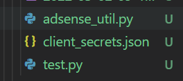 将项目中的adsense_util.py、get_all_accounts.py文件,以及刚才保存的client_secrets.json复制到工作目录下。(我这里重命名了一下)。